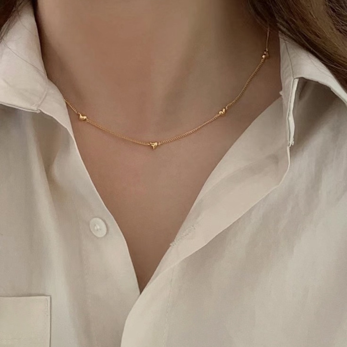 ๐๐ซ๐ž-๐จ๐ซ๐๐ž๐ซ [925silver] Mini heart chain necklace โ™ก